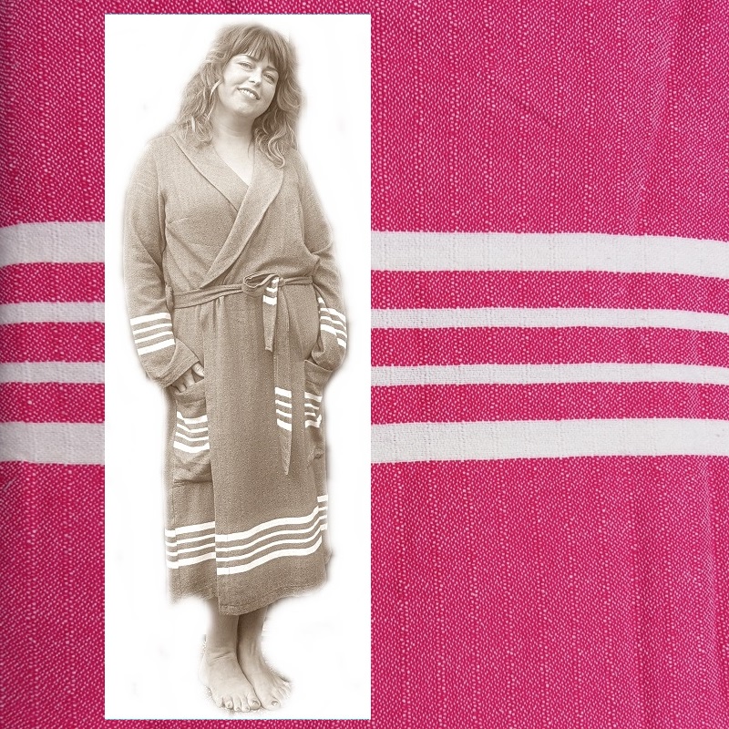 Het materiaal waaruit deze badjassen gemaakt worden is van Lalay. Zij hebben prachtig ambachtelijke katoen, wat zich enorm goed leent om badjassen van te maken. Dit materiaal is 100% natuurlijk en voelt aan als flanel. Hydrofiel katoen, wat comfortabel draagt, goed absorbeert, snel droogt en ademt!