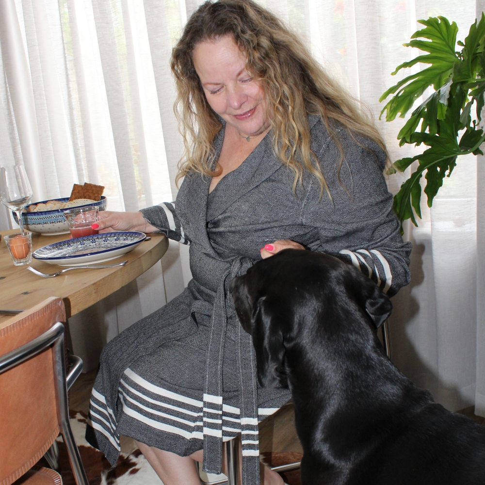 Deze badjas is een elegante dames badjas voor dames met een maat 42 tm 60, waarin de vrouwelijke vormen gezien mogen (en kunnen) worden! Bij het ontwerpen van het patroon heb ik rekening gehouden met alle vrouwelijke rondingen en alle mogelijke 'onplezierigheden' die er bij andere badjassen wél zijn.