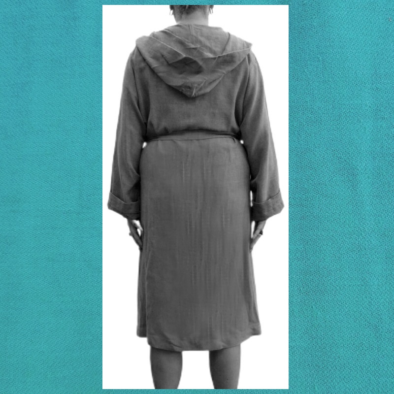 Het materiaal voor deze badjassen is van dezelfde Lalay kwaliteit katoen als al het overige textiel. Het textiel waarmee deze badjas maakt is, is gestonewashed, wat maakt dat het er wat gemarmerd uitziet. Dit 'kleurverschil' zie je terug in alle badjassen, wat ook maakt dat de badjas minder massief oogt. Eigenlijk geeft het een heel speels effect.