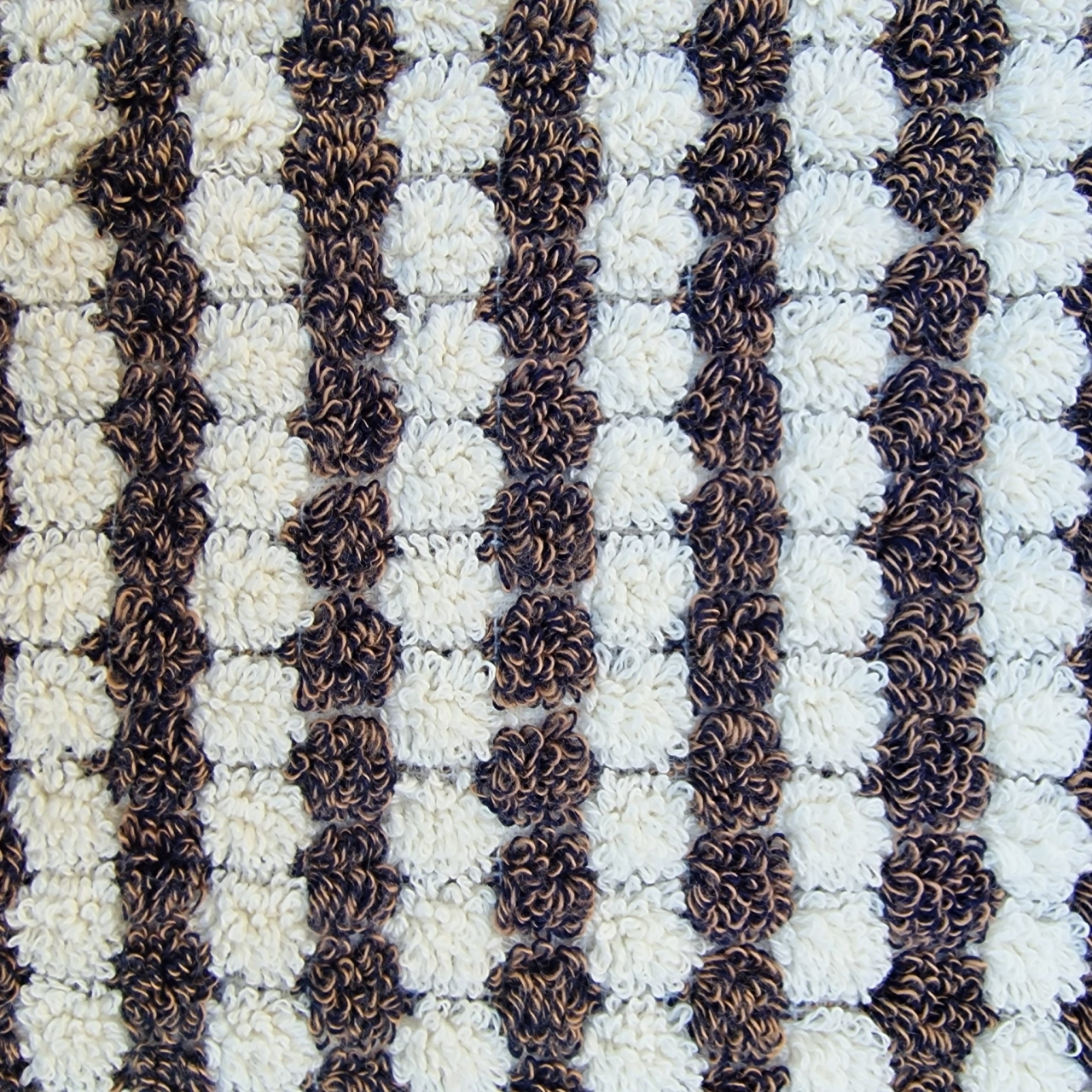Geweven op old shuttle looms, oftewel oude schietspoelweefgetouwen, net als al m'n andere textiel.